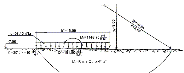 Рис. 19. Расчет общей устойчивости приведенного фундамента.