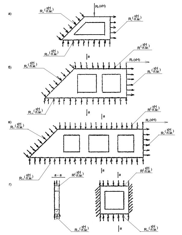 Рис. 22. Расчетные схемы вертикальной плиты 1-го курса массивов.