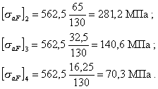 при [saF]i > 129 МПа [N0]i определяется по обеим формулам и за расчетное принимается наименьшее из двух полученных значений; при 64,5 МПа < [saF]i £ 129 МПа [N0]i рассчитывается по формуле (5.19); при [saF]i £ 64,5 МПа [N0]i принимается равным 106. Для изделий из аустенитных сталей допускаемое число полных расчетных циклов определяется по формулам: