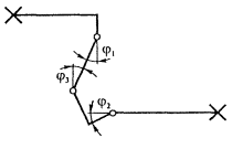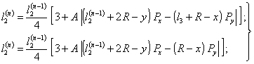 где e - величина растяжки в долях от температурного расширения (при 50 %-ной растяжке e = 0,5). Определение вылета компенсатора производится по нижеприведенным формулам, в которых верхние индексы в круглых скобках относятся к приближениям n - 1 и n соответственно (см. также рис. п. 3.1). 3.1. Поворот Г-образной формы