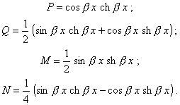 в котором ko определяется согласно п. 4.3.2 настоящих Норм; гиперболо-тригонометрическими функциями n1, n2, ..., n6, значения которых для участка длиной х определяются по формулам: где