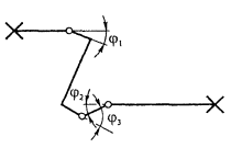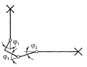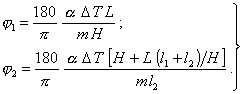 За расчетное значение принимается меньшее из двух L. Приложение 5РекомендуемоеРАСЧЕТ ТРЕХШАРНИРНЫХ СХЕМ КОМПЕНСАЦИИ ТЕМПЕРАТУРНЫХ РАСШИРЕНИЙ1. Трехшарнирные схемы, в которых шарниры выполнены из угловых (поворотных) компенсаторов, работающих в плоскости трубопровода, позволяют воспринимать значительные температурные удлинения трубопроводов, прокладываемых на опорах. При этом существенно сокращаются вылеты поворотов Г- и Z-образной формы и П-образных компенсаторов. 2. Целью расчета является определение углов поворота компенсаторов при известном температурном расширении плоского трубопровода, заключенного между двумя неподвижными опорами. 3. Типовые схемы и рассчитываемые для них углы представлены в табл. п. 5.1. В нижеприведенных формулах обозначения совпадают с показанными на схемах, а т - коэффициент, учитывающий растяжку угловых компенсаторов, используемых в качестве шарниров. При наличии растяжки т = 2, а при отсутствии т = 1. 3.1. Схема П (см. табл. п. 5.1):