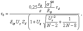 где Sиk - измеренная толщина стенки в месте k-го замера; Sk - номинальная толщина стенки в том же месте; N - общее количество замеров; S0 - начальное технологическое отклонение по толщине стенки (относительный минусовой допуск). В расчетах тепловых сетей можно принимать равным 0,05. Время наработки на отказ следует определять по формуле где td - срок службы трубопровода до проведения гидроиспытаний; Uq - q-квантиль нормального распределения вероятности; Ug - g-квантиль нормального распределения вероятности; RB - временное сопротивление при растяжении (предел прочности) при температуре 20 °С. Для трубопроводов тепловых сетей рекомендуемые значения квантилей: Ug = Uq = 1,28, которые соответствуют регламентируемой вероятности g = 90 % и доверительной вероятности q = 0,9. При соответствующем обосновании допускается принимать иные значения вероятностей в интервалах значений: