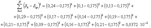 3. Пример расчета Исходные данные Тепловая сеть из труб 530×7. Рабочая температура 130 °С, рабочее давление 1,6 МПа. Трубы сварные из стали 20. Коэффициент снижения прочности стыковых сварных соединений jw = 0,8. Номинальное допускаемое напряжение [s]20 = 147 МПа; предел прочности при 20 °С - RB = 420 МПа. Трубопровод прослужил к моменту проведения гидравлических испытаний 18 лет. Перед проведением гидравлических испытаний проведены замеры толщины стенки, приведенные в таблице, общее число замеров N = 11.