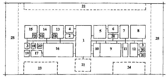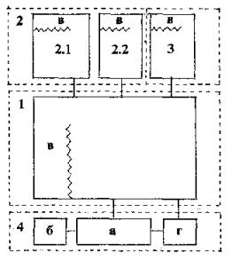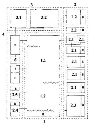 Приложение 3Функциональные структуры и планировочные схемы помещений детско-подростковых клубовРис. 1 Функциональная структура детского домового клуба Условные обозначения Основные функциональные зоны: 1 - массовых мероприятий; 2 - учебная; 3 - физического развития; 4 - отдыха, игр и развлечений Основные направления учебно-кружковых занятий: а - эстетическое развитие; б - трудовое воспитание; в - общегуманитарная деятельность; г - другие виды занятий А - универсальное трансформируемое зальное помещение (гостиная) Б - специализированные помещения Рис. 2 Функциональная структура микрорайонного разновозрастного клуба Условные обозначения Основные функциональные зоны: 1 - зрелищная и массовых мероприятий; 2 - учебно-кружковая; 3 - физкультурно-спортивная; 4 - рекреационная Основные направления учебно-кружковых занятий: а - художественное воспитание; б - техническая деятельность; в - эколого-биологическая деятельность; г - туризм и краеведение; д - общегуманитарная деятельность А - универсальные трансформируемые зальные помещения Б - специализированные помещения Рис. 3 Функционально-планировочная схема детского домового клуба (ДДК) 1 - трансформируемое универсальное зальное помещение (для отдыха, игр, развлечений, массовых мероприятий, эстетического и физического развития, общегуманитарной деятельности); 2 - специализированные учебные помещения для трудового воспитания: 2.1 - мастерская ремонта техники, мебели и т.д.; 2.2 - комната для занятий рукоделием и домоводством; 3 - помещения для физического развития; 4 - входные, хозяйственные и обслуживающие помещения: а - вестибюль с гардеробом; б - санитарные узлы; в - кладовые, встроенные шкафы, подсобные помещения; г - комната руководителя клуба Рис. 4 Функционально-планировочная схема микрорайонного разновозрастного клуба (МРК) 1 - трансформируемые универсальные помещения (1,1 - трансформируемое универсальное зальное помещение; 1.2 - трансформируемый универсальный зрительный зал) 2 - специализированные учебно-кружковые помещения: 2.1 - помещения художественного воспитания (музыкальная студия, студия изобразительного искусства, мастерская рукоделия, видеофотостудия); 2.2 - помещения технической деятельности (кружок начального моделирования, компьютерный класс); 2.3 - помещения эколого-биологической деятельности; 2.4 - помещение для туристско-краеведческой деятельности; 2.5 - помещения общегуманитарного направления деятельности; 3 - помещения физкультурно-спортивных занятий (3.1 - тренажёрный зал, 3.2 - зал для занятий ритмической гимнастикой); 4 - входные, хозяйственные и обслуживающие помещения: а - вестибюль с гардеробом, б - санузлы, в - кладовые, встроенные шкафы, подсобные помещения; г - комнаты руководителя клуба, преподавателей, для методической работы Рис. 5 Функционально-планировочная схема разновозрастного клуба для детей, подростков и молодёжи муниципального округа (авторы Р.В. и Н.В. Соколовы) 1. Холл-коммуникационное пространство. 2. Гардероб. 3. Санузлы. 4. Кухня (помещение для занятий кулинарией). 5. Гостиная. 6. Методический кабинет с библиотекой, кабинет директора. 7. Мастерская рукоделия. 8. Игротека для детей младшего возраста с комнатным спортивным комплексом. 9. Актовый зал. 10. Сцена с радиорубкой и комнатой артистов. 11. Аппаратная. 12. Фото-кино-класс. 13. Универсальная мастерская. 14. Электро-радиомасте