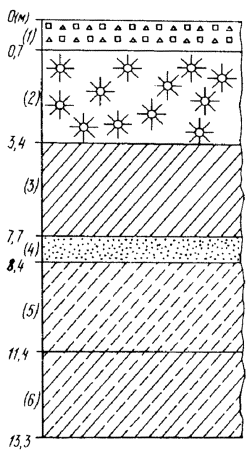 Рис. 25. Схема размещения измерительных пунктов на здании станции (цифры в кружках соответствуют месту расположения измерительных пунктов на станции ИСС) Таблица 17 Физико-механические свойства грунтов