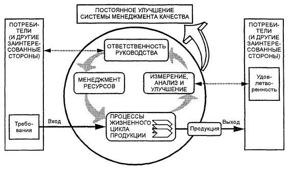 ГОСУДАРСТВЕННЫЙ СТАНДАРТ РОССИЙСКОЙ ФЕДЕРАЦИИ Системы менеджмента качества ОСНОВНЫЕ ПОЛОЖЕНИЯ И СЛОВАРЬ Quality management systems. Fundamentals and vocabulary Дата введения 2001-08-31 1 Область примененияНастоящий стандарт устанавливает основные положения систем менеджмента качества, являющихся объектом стандартов семейства ИСО 9000, и определяет соответствующие термины. Настоящий стандарт может использоваться: а) организациями, стремящимися добиться преимущества посредством внедрения системы менеджмента качества; б) организациями, стремящимися получить уверенность в том, что их заданные требования к продукции будут выполнены поставщиками; в) пользователями продукции; г) теми, кто заинтересован в едином понимании терминологии, применяемой в менеджменте качества (например поставщики, потребители, регламентирующие органы); д) теми сторонами, внутренними или внешними по отношению к организации, которые оценивают систему менеджмента качества или проверяют ее на соответствие требованиям ГОСТ Р ИСО 9001 (например аудиторы, органы по сертификации/регистрации); е) теми сторонами, внутренними или внешними по отношению к организации, которые консультируют или проводят обучение по системе менеджмента качества, соответствующей данной организации; ж) разработчиками соответствующих стандартов. 2 Основные положения систем менеджмента качества2.1 Обоснование необходимости систем менеджмента качестваСистемы менеджмента качества могут содействовать организациям в повышении удовлетворенности потребителей. Потребителям необходима продукция, характеристики которой удовлетворяли бы их потребности и ожидания. Эти потребности и ожидания, как правило, отражаются в технических условиях на продукцию и обычно считаются требованиями потребителей. Требования могут быть установлены потребителем в контракте или определены самой организацией. В любом случае приемлемость продукции в конечном счете устанавливает потребитель. Поскольку потребности и ожидания потребителей меняются, организации также испытывают давление, обусловленное конкуренцией и техническим прогрессом, они должны постоянно совершенствовать свою продукцию и свои процессы. Системный подход к менеджменту качества побуждает организации анализировать требования потребителей, определять процессы, способствующие получению продукции, приемлемой для потребителей, а также поддерживать эти процессы в управляемом состоянии. Система менеджмента качества может быть основой постоянного улучшения с целью увеличения вероятности повышения удовлетворенности как потребителей, так и других заинтересованных сторон. Она дает уверенность самой организации и потребителям в ее способности поставлять продукцию, полностью соответствующую требованиям. 2.2 Требования к системам менеджмента качества и требования к продукцииСемейство стандартов ИСО 9000 проводит различие между требованиями к системам менеджмента качества и требованиями к продукции. Требования к системам менеджмента качества установлены в ГОСТ Р ИСО 9001. Они являются общими и применимыми к организациям в любых секторах промышленности или экономики независимо от категории продукции. ГОСТ Р ИСО 9001 не устанавливает требований к продукции. Требования к продукции могут быть установлены потребителями или организацией, исходя из предполаг