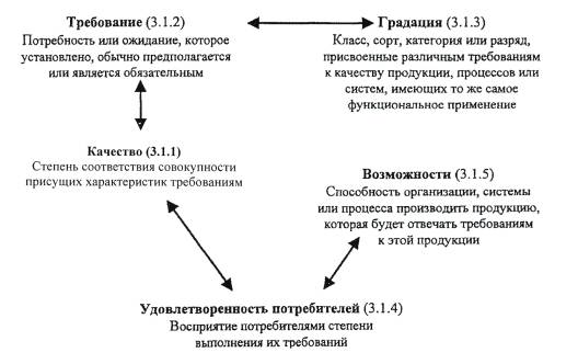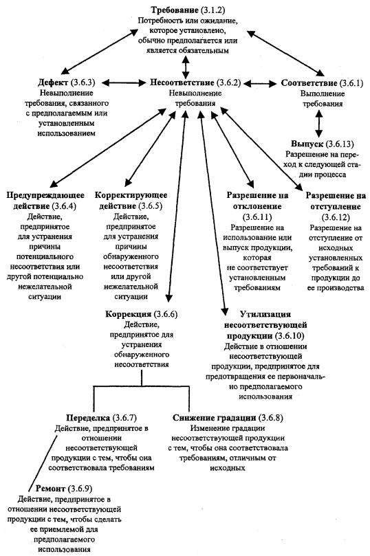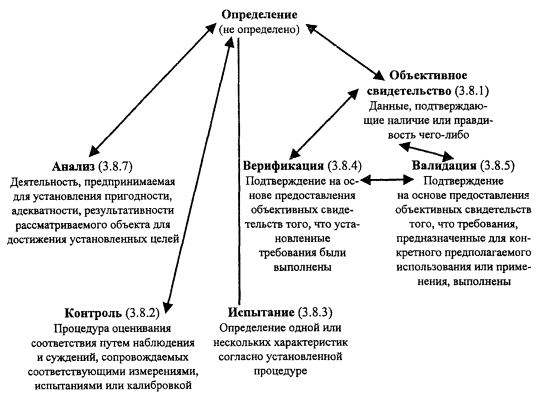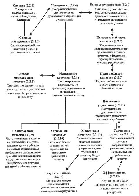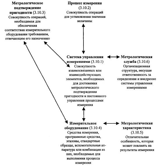 Рисунок А.13 - Понятия, относящиеся к обеспечению качества процессов измерения (3.10) ПРИЛОЖЕНИЕ Б(справочное) А Анализ 3.8.7 Аудит (проверка) 3.9.1 Аудитор 3.9.11 В Валидация 3.8.5 Верификация 3.8.4 Возможности 3.1.5 Выпуск 3.6.13 Высшее руководство 3.2.7 Г Градация 3.1.3 Группа по аудиту (проверке) 3.9.10 Д Дефект 3.6.3 Документ 3.7.2 З Заинтересованная сторона 3.3.7 Заказчик аудита (проверки) 3.9.8 Заключения по результатам аудита (проверки) 3.9.7 Записи 3.7.6 И Измерительное оборудование 3.10.4 Информация 3.7.1 Инфраструктура 3.3.3 Испытание 3.8.3 К Качество 3.1.1 Компетентность 3.9.12 Контроль 3.8.2 Корректирующее действие 3.6.53 Коррекция 3.6.6 Критерии аудита (проверки) 3.9.3 М Менеджмент 3.2.6 Менеджмент качества 3.2.8 Метрологическое подтверждение пригодности 3.10.3 Метрологическая служба 3.10.6 Метрологическая характеристика 3.10.5 Н Наблюдения аудита (проверки) 3.9.5 Надежность 3.5.3 Несоответствие 3.6.2 Нормативная и техническая документация 3.7.3 О Обеспечение качества 3.2.11 Объективное свидетельство 3.8.1 Организация 3.3.1 Организационная структура 3.3.2 П Переделка 3.6.7 План качества 3.7.5 Планирование качества 3.2.9 Политика в области качества 3.2.4 Поставщик 3.3.6 Постоянное улучшение 3.2.13 Потребитель 3.3.5 Предупреждающее действие 3.6.4 Проверяемая организация 3.9.9 Программа аудита (проверки) 3.9.2 Продукция 3.4.2 Проект 3.4.3 Проектирование и разработка 3.4.4 Производственная среда 3.3.4 Прослеживаемость 3.5.4 Процедура 3.4.5 Процесс 3.4.1 Процесс измерения 3.10.2 Процесс квалификации 3.8.6 Р Разрешение на отклонение 3.6.11 Разрешение на отступление 3.6.12 Результативность 3.2.14 Ремонт 3.6.9 Руководство по качеству 3.7.4 С Свидетельство аудита (проверки) 3.9.5 Система 3.2.1 Система менеджмента 3.2.2 Система менеджмента качества 3.2.3 Система управления измерениями 3.10.1 Снижение градации 3.6.8 Соответствие 3.6.1 Т Технический эксперт <аудит> 3.9.11 Требование 3.1.2 У Удовлетворенность потребителей 3.1.4 Улучшение качества 3.2.12 Управление качеством 3.2.10 Утилизация несоответствующей продукции 3.6.10 Х Характеристика 3.5.1 Характеристика качества 3.5.2 Ц Цели в области качества 3.2.5 Э Эффективность 3.2.15 (Измененная редакция. Изм. № 1). ПРИЛОЖЕНИЕ В[1] ГОСТ Р ИСО 9001-2001 Системы менеджмента качества. Требования [2] ГОСТ Р ИСО 9004-2001 Системы менеджмента качества. Рекомендации по улучшению деятельности [3] ГОСТ Р ИСО 14001-98 Системы управления окружающей средой. Требования и руководство по применению [4] ГОСТ Р 50779.11-2000 Статистические методы. Статистическое управление качеством. Термины и определения [5] Руководство ИСО/МЭК 2 Стандартизация и смежные виды деятельности. Общий словарь [6] ИСО 704-1987 Работа в области терминологии. Принципы и методы [7] ИСО 1087-1 Работа в области терминологии. Словарь. Часть 1: Теория и применение [8] ИСО 9000-1-1994 Стандарты на менеджмент качества и обеспечение качества. Часть 1: Руководящие указания по выбору и применению [9] ИСО 10006-1997 Менеджмент качества. Руководящие указания по обеспечению качества при управлении проектом [10] ИСО 100121 Требования, обеспечивающие качество измерительного оборудования ___________ 1 Предстоит публикация. (Пересмотр ИСО 10012-1-1992 и ИСО 10012-2-1997). [11] ИСО 10013-1995 Руководящие указания по разработке руководств по качеству [12] ИСО/ТО 10017-1999 Руководящие указания по выбору статистических методов применительно к ИСО 9001-94 [13] ИСО 10241-1992 Международные терминологические стандарты. Разработка и сплошная проверка [14] ИСО/ТО 13425-1995 Руководство по выбору статистических метод