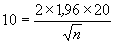 где s - среднее квадратическое отклонение распределения. Следовательно, если требуемый доверительный интервал составляет 10 % от реального среднего арифметического значения при требуемом доверительном уровне 95 %, а среднее квадратическое отклонение составляет 20 % от среднего арифметического значения, формула меняется