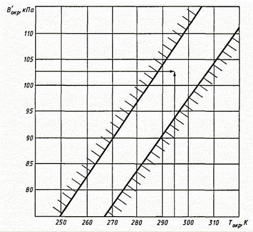 PS - парциальное давление насыщенного водяного пара при данной температуре окружающего воздуха, кПа. Токр - температура окружающего воздуха, К. d - содержание водяных паров в воздухе на входе в устройство для измерения расхода воздуха, г/кг.