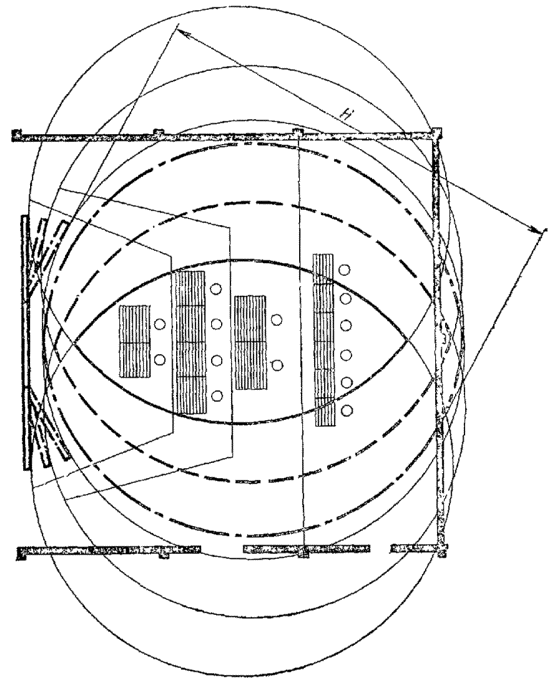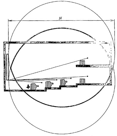 Черт. 2 2.6. Построение в разрезе зоны наилучшего видения для залов и кабин с коллективными средствами отображения информации приведено на черт. 3.