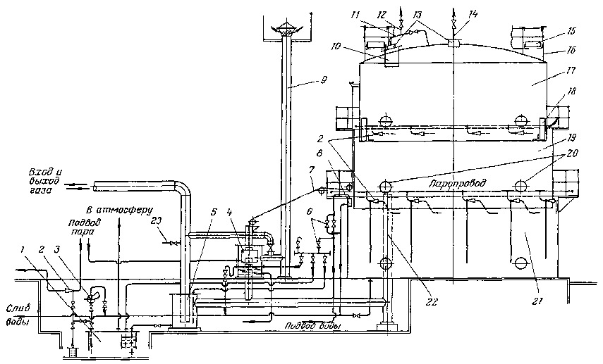 Рис. 12. Перепускное устройство над газовым стояком газгольдера: