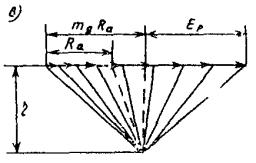 16.22. Полная высота анкерной стенки (рис. 22) определяется из условия ее устойчивости по формуле hс = t1 + tс + Dt, (83) где t1 - наданкерная высота анкерной стенки; tс - глубина погружения из графоаналитического расчета от анкера до пересечения замыкающей с веревочным многоугольником при действии на стенку анкерной реакции, определяемой из условия mдRа; Рис. 21. Схема к расчету усилий в анкерных тягах Рис. 22. Расчетная схема анкерной стенки: а - суммарная эпюра давления; б - веревочный многоугольник; в