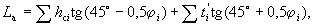 ji - угол внутреннего трения грунта основания и засыпки, соответствующий i-му слою грунта. 16.27. Если по общим компоновочным требованиям (из-за стесненности территории) или технико-экономическим соображениям возможно и целесообразно приблизить анкерные опоры к лицевой стенке с нарушением условия (88) или если в поверхностных слоях основания между лицевой стенкой и анкерными устройствами залегают грунты значительно слабее по прочностным свойствам, чем грунты засыпки, следует расчетом проверить анкерующую способность массива грунта. Рис. 24. Схема для определения расстояния Lа между лицевой стенкой и анкерными опорами: