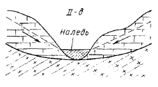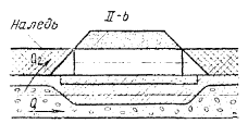 Примечание. Q - расход поверхностных или грунтовых вод выше стесненного участка; Q1 - расход ниже стесненного участка; Q2 - наледный расход; НВ - глубина водотока до водоупора выше стесненного участка; Н - глубина воды на стесненном участке; d - глубина промерзания за пределами стесненного участка; dM - глубина промерзания на стесненном участке; hП - глубина потока на стесненном участке; dw - глубина уровня грунтовых вод; m - высота переката. По степени опасности наледи разделяют на следующие виды: неопасные, не оказывающие вредного воздействия на инженерные сооружения; опасные, которые вызывают нарушение нормальной работы сооружений; очень опасные, представляющие непосредственную угрозу движению транспорта и устойчивости сооружений. По длительности существования наледи бывают: сезонные, стаивающие летом полностью, и многолетние, часть которых не успевает растаять летом и переходит на следующий зимний сезон. 1.7. Сложные природные условия, в которых развиваются наледи, в сочетании с дополнительным влиянием на их развитие дорожных сооружений, обусловливают многообразие наблюдаемых в полосе дороги наледей. Генетические типы наледей, их морфологические характеристики и ледотермический режим приведены в табл. 1. Вредные воздействия наледей на искусственные сооружения1.8. Наледи оказывают значительные вредные воздействия на искусственные сооружения и часто создают затруднения при их эксплуатации. Наледи могут: 1) закупоривать льдом отверстия малых искусственных сооружений и затруднять пропуск весенних вод; 2) затоплять проезжую часть подходов к искусственным сооружениям и затруднять движение транспорта; 3) деформировать искусственные сооружения при образовании около них наледных бугров; 4) создавать условия для размыва конусов и земляного полотна подходов, а также изменения конфигурации русла водотока при стоке весенних вод по наледному льду. 2. ИЗЫСКАНИЯ И ИНЖЕНЕРНО-ГЕОЛОГИЧЕСКИЕ ОБСЛЕДОВАНИЯ ПЕРЕХОДОВ ЧЕРЕЗ ВОДОТОКИ С НАЛЕДЯМИОсобенности изысканий2.1. Места переходов через малые и средние водотоки, где наледи оказывают наибольшие воздействия, определяются рациональным положением трассы, которая должна иметь высокие транспортно-экономические показатели. Однако при изысканиях автомобильных дорог необходимо стремиться выбирать такое направление трассы, которое без существенного ее ухудшения в плане и продольном профиле позволяет обходить участки с большим количеством наледей. Технико-экономическое сравнение вариантов трассы должно учитывать затраты на постройку противоналедных сооружений, удорожание строительства на наледных участках искусственных сооружений с увеличенными отверстиями и более высокими подходами, а также затраты на борьбу с наледями при эксплуатации. 2.2. Наледеопасными участками являются: склоны северной экспозиции с неглубоким залеганием вечномерзлых грунтов, имеющие надмерзлотные воды; групповые выходы родников подземных вод; сильно заболоченные склоны; устья водотоков, особенно места слияния нескольких водотоков; водотоки с распластанными руслами, малыми глубинами и выступающими из воды грядами галечника; перекаты со скальными выступами и валунами; порожистые участки. 2.3. Не опасны в отношении наледеобразования и благоприятны для прокладки трассы водораздельные участки, склоны антикли