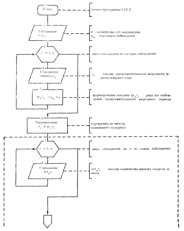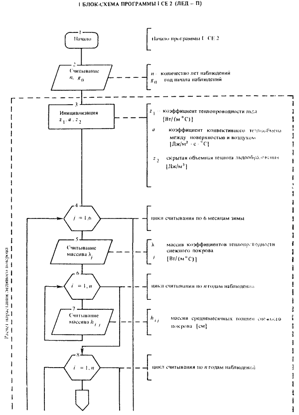 Максимальная толщина наледи Zmax p=YZСР Р=1,43×1,80=2,57м, где ПРИЛОЖЕНИЕ 6Программа I СЕ 3 (Лед-III) расчетов осадков, продолжительности морозного периода и ординат кривых обеспеченности при прогнозировании наледей ключевых водI. БЛОК-СХЕМА ПРОГРАММЫ I CE 3(Лед-III)