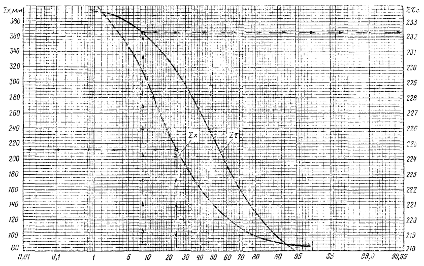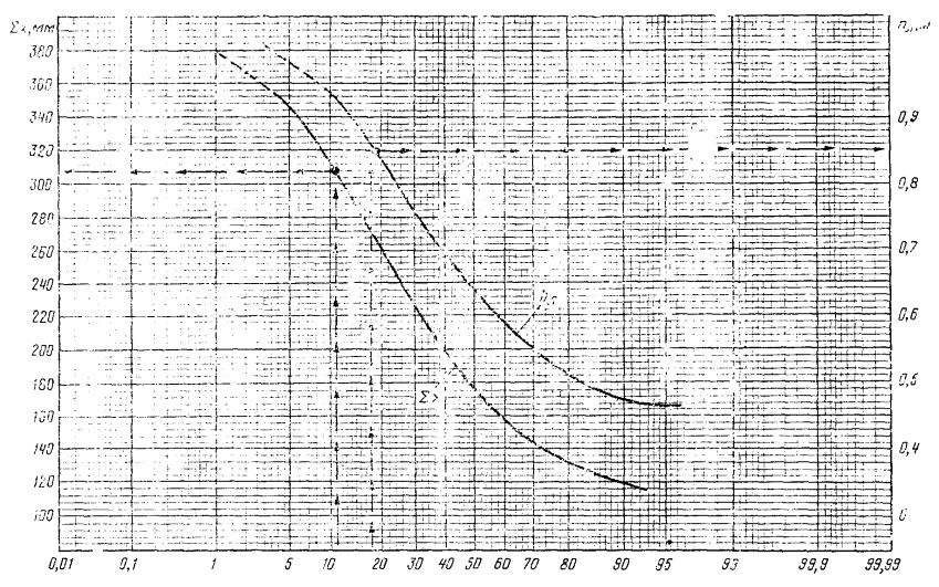 По графику кривых обеспеченности при P(Sxp) и P(dfp) находим: Sxp=292 мм; dfp=2,26 м. Определяем переходные коэффициенты