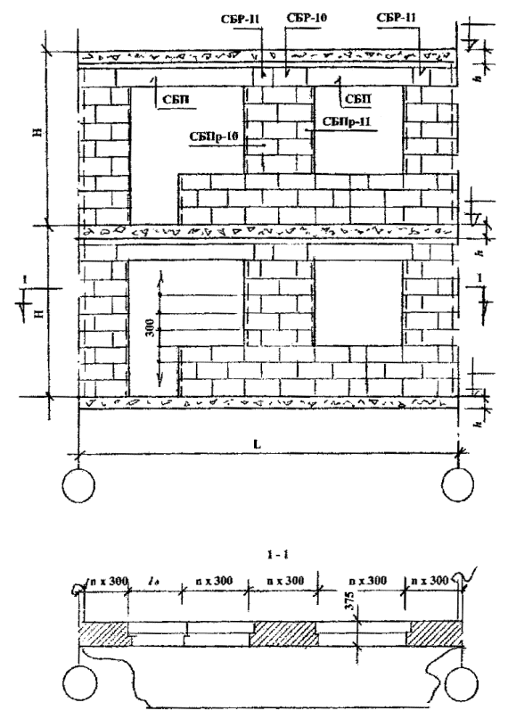 Фрагмент фасадной стены. Пример раскладки сб. 11