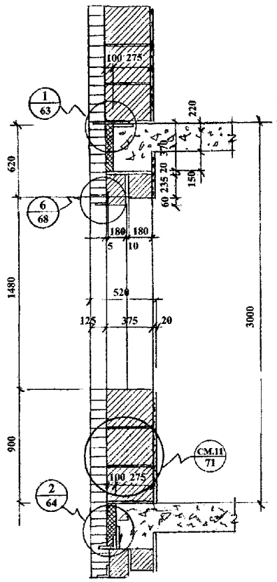 При использовании нормалей с облицовкой фасадной стены другими (кроме кирпича) облицовочными материалами необходимо учитывать возможную разницу в усадках материала стены и облицовки.