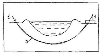 Рис. 2. Технологическая схема строительства перехода трубопровода через преграды способом направленного бурения Этап I - бурение пионерной скважины с выходом буровой головки на противоположном берегу; Этап II - расширение пионерной скважины; Этап III - протаскивание рабочего трубопровода в расширенную скважину; Этап IV - испытание рабочего трубопровода. 4.4.3. Эффективность работы на всех этапах ННБ зависит от правильного выбора бурового оборудования и инструмента с учётом грунтовых условий, состава бурового раствора, надежной системы ориентации, квалификации и опыта обслуживающего персонала. 4.5. Бурение пионерной скважины4.5.1. Перед началом бурения пионерной скважины необходимо: · выполнить монтаж и опробование бурового оборудования, в соответствии с Инструкцией предприятия-изготовителя; · выполнить закрепление буровой установки с наклоном рамы, в соответствии с заданным углом входа; · проверить надежность и устойчивость радиосвязи между берегами водной преграды (пунктами входа и выхода скважины); · проверить и выполнить калибровку прибора ориентации, с целью получения и записи исходных показателей прибора для последующей корректировки направления бурения скважины. 4.5.2. Эффективность бурения пионерной скважины зависит от правильного выбора конструкции буровой головки. В зависимости от грунтовых условий применяют два типа буровых головок: · для бурения мягких грунтов (как правило, илистых и песчаных) рекомендуется струйная боровая головка. С этой головкой бурение осуществляется высоконапорными струями бурового раствора, выбрасываемого через насадки и разрешающие грунт; · для бурения твердых глинистых и мягких скальных грунтов рекомендуется бурильная головка с режущими, обычно вольфрамово-карбидными зубьями, приводимая в действие забойным двигателем. 4.5.3. Выбирается и рассчитывается профиль наклонно-направленной скважины. Составляется план-программа на бурение ННС. В план-программе указывается тип забойного двигателя, тип и диаметр долота, компоновка низа бурильной колонны, типоразмер бурильных труб, режим бурения, характеристика бурового раствора, расход промывочной жидкости. 4.5.4. Бурение пионерной скважины ведется ориентированным способом. Перед забуриванием скважины забойный двигатель ориентируется в нужном направлении и после каждого наращивания проводится контроль траектории ствола скважины. При необходимости проводится корректировка параметров искривления. 4.5.5. В зависимости от грунтовых условий при бурении пионерной скважины могут быть использованы трубы (их диаметр определяется расчётом) в качестве направляющей для бурильной колонны. Обсадная колонна при бурении следует за бурильной колонной, предупреждая ее изгиб и удерживая по курсу, создавая устойчивость стенок скважины при бурении, являясь кожухом вокруг бурильной колонны. В этом случае обсадной трубопровод в дальнейшем используется для протаскивания расширителя и рабочего трубопровода через скважину. 4.6. Буровой (бентонитовый) раствор для направленного бурения4.6.1. При бурении горизонтально-направленных скважин должен применяться бентонитовый раствор, приготовленный из глинопорошка, воды и химических реагентов. Буровой раствор должен выполнять следующие основные функции: · очищать забой от выбуренной породы и выносить ее на дне