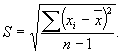 а значение S (оценка среднего квадратичного отклонения) - по формуле