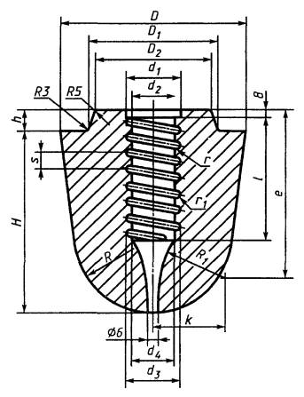 Таблица Б.1 - Размеры винтовой нарезки стопорного штыря