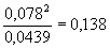Самый большой размах составляет 0,078 для лаборатории G на пробе 3. Сумма квадратов всех размахов составляет 0,0422 + 0,0212 +,..., +0,0262 + 02 = 0,0439. В результате отношение, которое сравнивают с критическим значением в испытании по Кохрену, составляет
