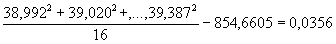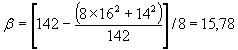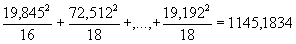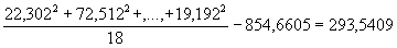 4.3.3 При исследовании выявлено, что межлабораторное среднеквадратическое отклонение для пробы 93, равное 15,26, существенно больше, чем среднеквадратические отклонения для других проб. Необходимо отметить, что среднеквадратическое отклонение для повторных испытаний также велико. Так как степени свободы для межлабораторного среднеквадратического отклонения не одинаковы для различных проб, следует использовать испытание, основанное на отношении дисперсий (испытание по модифицированному критерию Фишера). Средневзвешенная дисперсия, не включающая пробу 93, представляет собой сумму сумм квадратов, деленную на общее число степеней свободы, т.е.