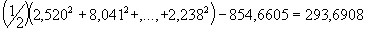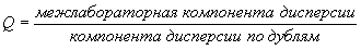 Сумма квадратов по лабораториям равна сумме квадратов по парам результатов минус сумму квадратов по пробам, минус минимальную оценку суммы квадратов по взаимодействию «лаборатория ´ проба»