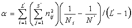 где L¢ = L минус число лабораторий, отброшенных по 4.5, минус число лабораторий, в которых после отбраковки по 4.2.2 отсутствуют результаты; S¢ = S минус число проб, отбракованных в соответствии с 4.3. Сумма квадратов по пробам равна
