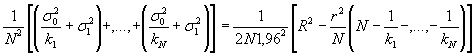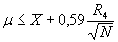 Коэффициент 0,59 - это отношение Если обнаружено, что воспроизводимость метода R значительно превосходит повторяемость (сходимость) метода r, то следует подвергнуть анализу причины столь большого значения отношения R/r и, насколько возможно, улучшить метод. Измененная редакция. Изм. № 1. 6.2 Воспроизводимость метода R6.2.1 Приемлемость результатов Приведенная процедура предназначена для определения приемлемости результатов, полученных различными лабораториями в процессе обычной повседневной деятельности, по степени их согласованности с воспроизводимостью метода испытаний. При возникновении спора между поставщиком и получателем следует действовать в соответствии с процедурой, изложенной в разделах 7 - 9. Если в двух лабораториях получены единичные результаты и их разность меньше или равна R, оба результата следует считать приемлемыми. Среднее значение этих результатов вернее, чем каждый из результатов в отдельности, и его следует рассматривать как оцененное значение определяемого свойства. Если разность указанных результатов превышает R, оба результата считают подозрительными. В этом случае каждой лаборатории следует получить дополнительно не менее трех приемлемых результатов по 6.1.1. Разность средних значений всех приемлемых результатов от каждой лаборатории следует оценить на соответствие, используя новое значение R2 вместо R. R2 выражают формулой где R - воспроизводимость метода; r - повторяемость (сходимость) метода; k1 - число результатов, полученных в первой лаборатории; k2 - число результатов, полученных во второй лаборатории. Если разность этих средних значений меньше или равна R2, эти средние значения считают приемлемыми, и их общее среднее значение следует рассматривать как оцененное значение определяемого свойства. Если разность между средними значениями превосходит R2, следует действовать в соответствии с процедурой, изложенной в разделах 7 - 9. Если более двух лабораторий, т.е. (N + 1) > 2, представили по одному или более приемлемых результатов, находят разность наиболее удаленного лабораторного среднего значения и среднего значения остальных N лабораторных средних значений. Полученную разность следует сравнивать с R3, значение которой рассчитывают по формулам: Значение R1 определяют согласно формуле (18). Она соответствует наиболее удаленному лабораторному среднему значению. Если разность меньше или равна R3 по абсолютному значению, то все результаты следует рассматривать как приемлемые, и их среднее значение принимают как оцененное значение определяемого свойства. Если разность превосходит R3, наиболее удаленное лабораторное среднее значение отбрасывают. Используя формулы (22) и (23), сравнение повторяют до получения приемлемой группы средних значений по лабораториям. Среднее значение этих лабораторных средних значений принимают в качестве оцененного значения определяемого свойства. Однако если из общего числа не более 20 было отбраковано два или более лабораторных средних значений, то процедуру выполнения испытаний и аппаратуру следует проверить и, если возможно, выполнить новую серию испытаний. 6.2.2 Доверительные границы Если в N лабораториях получены один