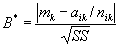 В ходе расчета для каждой пробы вычисляют сумму квадратов отклонений. Эти результаты, также рассчитанные с точностью до единиц в третьем десятичном разряде, представлены в таблице 3. В первую очередь испытывают ячейку с наибольшим экстремальным отклонением. Это отклонение получено лабораторией D на пробе 1. Экспериментальное значение отношения В* в испытании по критерию Хокинса равно