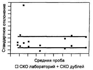 средний результат наиболее отклоняющейся лаборатории. Два оставшихся средних