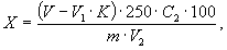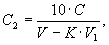 где V - объем раствора трилона, Б, взятый для установки соотношения, см3; V1 - объем раствора сернокислой меди, израсходованный на титрование, см3. 3.29 Установка концентрации раствора трилона Б по оксиду алюминия. В коническую колбу вместимостью 300 см3 помещают 10 см3 стандартного раствора оксида алюминия, приливают 2-3 см3 соляной кислоты, 70-100 см3 воды и 25 см3 раствора трилона Б. Содержимое колбы нагревают до кипения, остывший до температуры 70-80 °С раствор нейтрализуют раствором аммиака до переходного цвета индикаторной бумаги конго, приливают 15-20 см3 буферного раствора с рН 4,8-6,0 5-7 капель раствора индикатора ПАН и оттитровывают избыток раствора трилона Б раствором сернокислой меди до перехода окраски раствора из желто-зеленой в сине-фиолетовую. Проводят три параллельных титрования. Массовую концентрацию раствора трилона Б (С2) в г/см3 оксида алюминия вычисляют по формуле