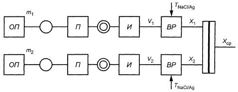 ВР - вычисление результатов определений; ТNaСl/Ag - титр раствора хлористого натрия по серебру, г/см3; Х1 и Х2 - массовая доля серебра в пробах, %.