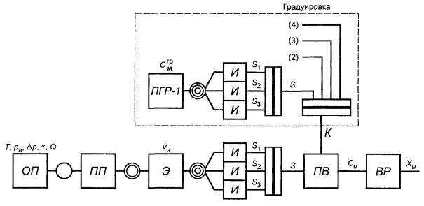 ОП - отбор газовой пробы; при отборе измеряют параметры пробы: температуру Т, °С; атмосферное давление ра, кПа; разрежение Dр, кПа; время отбора t, мин; объемный расход Q, дм3/мин.