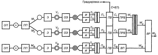 И - двукратное заполнение кюветы каждым элюатом и отсчет показаний ИК-анализатора П11, П12, П21, П22, Пф1, Пф2 (первая цифра в индексах указывает на происхождение элюата, вторая - соответствует номеру отсчета).
