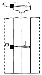 Xmax - максимальное расстояние от линии, проходящей через проекцию точки пересечения угловых отражателей, до линии, проходящей перпендикулярно к поверхности Б через середину (точку ввода луча) преобразователя, установленного в положение, при котором задний фронт первого эхо-сигнала еще пересекается с передним фронтом второго эхо-сигнала от угловых отражателей на уровне линии развертки, мм;
