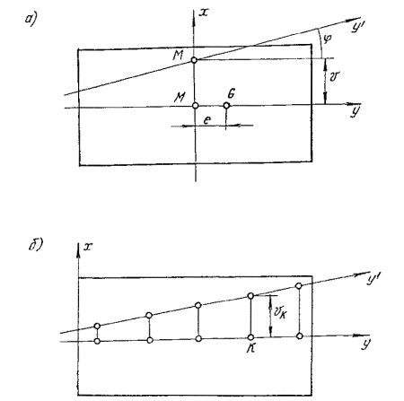 где Кvv - коэффициент горизонтальной жёсткости свайного поля секции при её смещении, кН/м; Кφφ - коэффициент горизонтальной жёсткости свайного поля секции при её повороте, кН·м; Кφv = Кvφ - смешанный коэффициент жёсткости, характеризующий наличие эксцентриситета по длине между центром масс секции (начало координат) и центром жёсткости свайного поля, кН; Срх, Срy, Срφ - коэффициенты жёсткости р-й сваи или свайной опоры соответственно при смещении её в направлении осей x, y и при повороте в горизонтальной плоскости, кН/м, кН/м и кН·м; Рис. 2. Схемы перемещений секций в плане: а) - для жёсткого диска; б) - для деформируемой конструкции верхнего строения; x, y - координатные оси в горизонтальной плоскости плиты; у’ - координатная ось переместившейся плиты; М - центр масс плиты; G - центр жёсткости свайного поля; е - эксцентриситет; V - перемещение центра масс плиты; φ - угол поворота плиты; Vк - перемещение узла К. xp, yp - координаты р-й сваи относительно центра масс секции (х - в направлении сейсмического воздействия, у - в перпендикулярном направлении), м; n - число свай в секции. 4. ОСНОВНЫЕ ПОЛОЖЕНИЯ РАСЧЕТАНа стадии предварительных расчётов по выбору конструкции причальных сооружений и высотных надстроек допускается сейсмические нагрузки определять, исходя из рассмотрения сейсмических колебаний отдельно причального сооружения и отдельно надстройки. При этом необходимо учитывать взаимное влияние расчленяемых подсистем согласно рекомендуемому приложению 4. 4.2. Определение сейсмических нагрузок, вызываемых их действием перемещений сооружения и внутренних усилий в элементах конструкции, следует выполнять с использованием спектрального подхода (см. раздел 5 настоящего Руководства и справочное приложение 5). Расчёты акселерограммы следует производить для случаев оговоренных в СНиП II-7-81. Расчётные значения искомых величин необходимо определять с обеспеченностью не ниже 0,95. Алгоритм указанных вероятностных методов расчёта приведён в рекомендуемом приложении 6. 4.4.
