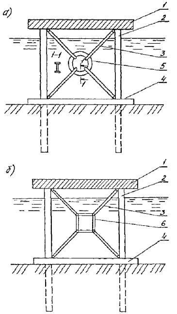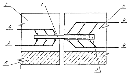 6. ОСНОВНЫЕ ТРЕБОВАНИЯ К КОНСТРУИРОВАНИЮ6.1. Конструирование причальных сооружений эстакадного типа необходимо осуществлять с соблюдением требований главы СНиП II-51-74, главы СНиП II-7-81, ВСН 3-80 / Минморфлота, а также с учётом требований настоящего раздела. 6.2. Протяжённые сооружения следует разделять на отдельные секции антисейсмическими швами, которые целесообразно совмещать с температурно-осадочными швами. Длину секций принимать в соответствии с указаниями ВСН 3-80 / Минморфлота. Антисейсмические швы должны разделять секции по всей высоте. Ширину антисейсмических швов следует назначать по результатам расчёта и принимать не менее 40 мм. Вертикальные антисейсмические швы в бортовых балках, плитах покрытий верхнего строения должны закрываться компенсаторами или нащельниками из оцинкованной стали, алюминия или пластмассы, не препятствующих взаимному перемещению. Горизонтальные антисейсмические швы между секциями заполняются упругими прокладками, не препятствующими горизонтальным смещениям секций. В качестве прокладок следует применять ленты из пенопласта, пороизола, губчатой резины и других упругих материалов. Конструкция перекрытия антисейсмических швов не должна препятствовать взаимным горизонтальным перемещениям секций во всех направлениях и должна исключать возможность возникновения случайных связей, не предусмотренных проектом. Целесообразность соединения секций между собой специальными связями, препятствующими относительному сдвигу секций в направлении, перпендикулярном продольной оси сооружения, устанавливается по результатам расчёта на основное сочетание нагрузок с учётом сил навала судов и на особое сочетание нагрузок с учётом сейсмических сил. При этом конструкция связей должна исключать возможность их хрупкого разрушения при сейсмических колебаниях. Рекомендуемая конструкция связей между секциями показана на рис.4. 6.3. Сборные железобетонные плиты верхнего строения каждой секции должны быть надёжно замоноличены. Стыкование сборных железобетонных плит следует выполнять в соответствии с указаниями Руководства по проектированию морских причальных сооружений РД 31.31.27-81. В том случае, когда в продольных рёбрах плит не предусмотрены выпуски арматуры, в конструкции стыков замоноличивания должны быть устроены шпонки по продольным рёбрам. Зазоры между продольными рёбрами плит должны непрерывно армироваться каркасами с последующим их заполнением монолитным бетоном (рис.5). 6.4. В качестве опор сооружений эстакадного типа необходимо применять сваи в виде стальных труб либо предварительно напряжённых центрифугированных железобетонных оболочек. Применение в качестве опор призматических железобетонных свай для района строительства с сейсмичностью 7, 8 и 9 баллов не допускается. При проектировании предварительно напряжённых железобетонных свай-оболочек и ригелей необходимо, чтобы предельный изгибающий момент из условия, прочности превышал не менее чем на 25% изгибающий момент из условия трещиностойкости. 6.5. Сваи необходимо погружать до глубин залегания плотных, устойчивых к сотрясениям грунтов. Опирание нижних концов свай на рыхлые водонасыщенные грунты, глинистые грунты мягко-пластичной, текучепластичной и текучей консистенции не допускается. 6.6. Верхние концы свай должны быть жёстко зад