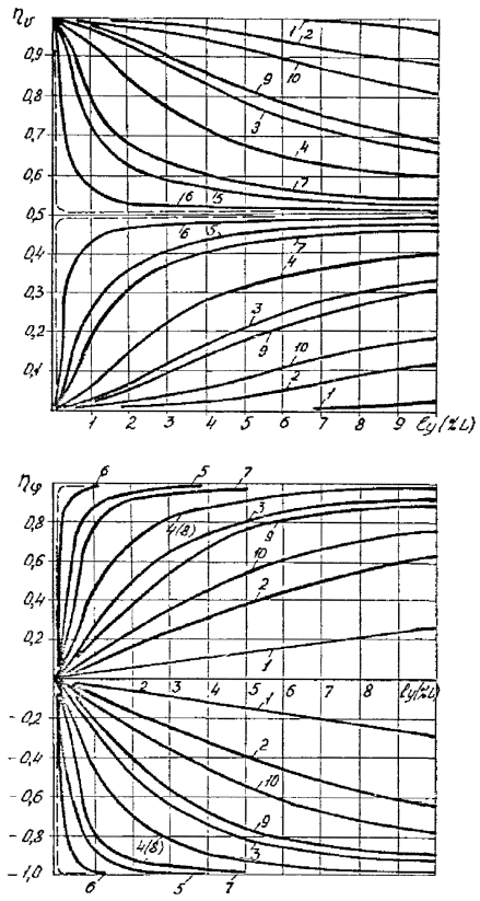 учётом случайного эксцентриситета Таким образом, диапазон изменения эксцентриситета принимается от минус 3,5 до 1,1 м, или в процентах - от минус 4,5% до 1,5%L. Дальнейшие расчёты выполняются для трёх значений эксцентриситета. 3. ОПРЕДЕЛЕНИЕ ПЕРИОДОВ СОБСТВЕННЫХ КОЛЕБАНИЙ КОЭФФИЦИЕНТОВ ДИНАМИЧНОСТИ И КОЭФФИЦИЕНТОВ ФОРМ Частоты собственных колебаний секции определяются по формуле (4.4), а периоды по формуле (4.6) рекомендуемого приложения 4. Используя полученные периоды, по графику на рис.3 основной части Руководства, соответствующему грунтам II категории, определяются коэффициенты динамичности β. Коэффициенты формы определяются по графикам на рис.4.4 рекомендуемого приложения в зависимости от эксцентриситета (см. формулу (1.3) настоящего приложения) и параметра λ, определяемого по формуле (4.3) приложения 4 (λ = 1,12). Результаты расчётов представлены в таблице 1.1. Таблица 1.1 Динамические характеристики сооружения