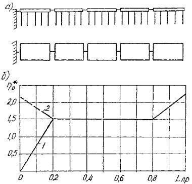 где Vi и φi - смещение центра масс секции и угол её поворота, вычисленные по формуле (6), м и рад. 5.5. Для цепочки жёстких секций, соединённых между собой связями, препятствующими относительному смещению соединяемых концов секций в поперечном направлении, усилия в связях необходимо определять при сейсмическом воздействии, перпендикулярном продольной оси сооружения, по формуле
