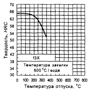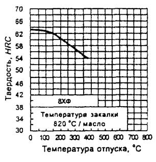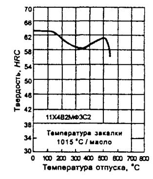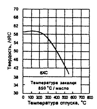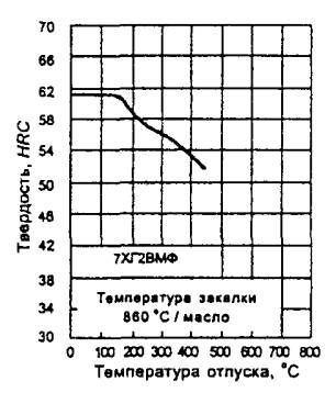 Твердость образцов после закалки от оптимальных температур для различных марок инструментальной легированной стали приведена в таблице Б.1.