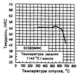 Для тяжелонагруженного прессового инструмента (прошивных и формующих пуансонов, матриц и т.п.); инструмента для высадки на горизонтально-ковочных машинах и вставок штампов напряженных конструкций, для горячего объемного деформирования конструкционных сталей и жаропрочных металлов и сплавов (вместо менее теплостойких сталей марок 3Х2В8Ф и 4Х2В5МФ). Наиболее высокие прокаливаемость и теплостойкость имеет сталь марки 5Х3В3МФС |