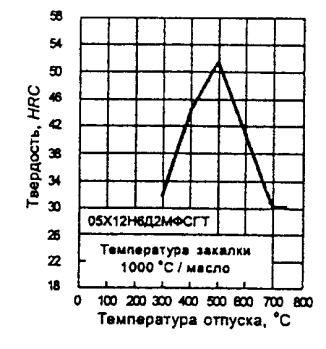 Для металлопродукции из стали марки 05Х12Н6Д2МФСГТ подгрупп а и б значения твердости не являются браковочными до 2003 г., но заносятся в документ о качестве. 4.1.2.2 Твердость образцов металлопродукции после закалки и закалки с отпуском должна соответствовать таблице 4. Таблица 4