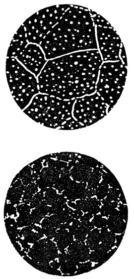балл 5 - цепочки карбидных частиц образуют сетку с отдельными полностью замкнутыми ячейками;