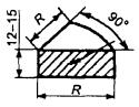 Примечания: 1. Темплет для образца вырезают на расстоянии не менее 20 мм от торца прутка. 2. Плоскости шлифов на рисунках заштрихованы. 3. Контроль микроструктуры отожженной металлопродукции (зернистого перлита, карбидной сетки) и закаленной металлопродукции (зерно аустенита) должен проводиться на шлифах, плоскость которых перпендикулярна к направлению вытяжки при прокатке и ковке. Рекомендуемые размеры плоскости шлифа для контроля микроструктуры прутков круглого сечения должны быть следующими: а) для прутков диаметром до 25 мм - полная плоскость поперечного сечения прутка (рисунок 1); б) для прутков диаметром от 26 до 40 мм - половина плоскости поперечного сечения прутка (рисунок 3); в) для прутков диаметром от 41 до 50 мм - четверть плоскости поперечного сечения прутка (рисунок 4); г) для прутков диаметром от 51 мм и выше плоскость сечения шлифа должна соответствовать рисунку 6. 4. Контроль карбидной неоднородности должен проводиться на шлифах, плоскость которых параллельна направлению вытяжки при прокатке и ковке. 5. Карбидную неоднородность в зависимости от формы поперечного сечения следует контролировать: - круг - в середине радиуса; - квадрат - на расстоянии 0,25 стороны квадрата от середины стороны; - полосу - на расстоянии 0,25 толщины от середины широкой стороны. 6. Образцы для контроля карбидной сетки, карбидной неоднородности и величины зерна аустенита подвергают закалке от температур, указанных в таблице 4 настоящего стандарта и в приложении Б для соответствующей марки стали. 7. Допускаются: а) контроль карбидной сетки на продольных шлифах. В арбитражных случаях контроль должен проводиться только на поперечных шлифах; б) контроль карбидной неоднородности стали марок Х12, X12ВМФ, Х12МФ, Х12Ф1 на образцах после закалки и отпуска при температуре 400 °С, а также на образцах после отжига; в) контроль неметаллических включений на закаленных образцах. Температуры закалки указаны в п. 4.1.2.2 настоящего стандарта и в приложении Б для соответствующей марки стали. 8. Образцы шлифуют и полируют обычными методами, принятыми на предприятиях при изготовлении микрошлифов. Образцы для контроля величины зерна аустенита перед проведением закалки должны быть отполированы, а после закалки подвергнуты легкой переполировке. 9. Травление шлифов проводят 4 %-ным раствором азотной кислоты в этиловом спирте. При контроле карбидной неоднородности металлопродукции из стали марок Х12, X12ВМФ, Х12МФ, Х12Ф1 на отожженных образцах рекомендуется применять электролитическое травление шлифов в 10 %-ном водном растворе щавелевой кислоты (режим травления: плотность тока 40 А/дм2, время травления от 30 до 40 с). 10. Контроль неметаллических включений проводят на нетравленных шлифах. 11. Оценку зернистого перлита проводят при увеличении 500 по прилагаемой десятибалльной шкале № 1 эталонов микроструктур (приложение Г). Оценку карбидной сетки проводят при увеличении 500 по шестибалльной шкале № 4 (приложение Ж). Оценку карбидной неоднородности проводят при увеличении 100: - стали марок Х12, X12ВМФ, Х12МФ, Х12Ф1 - по шкале № 2 (приложение Д); - стали марок 9Х5ВФ, 8Х6НФТ, 8Х4В2МФС2, Х6ВФ, 6Х6В3МФС, 11Х4В2МФ3С2, 6Х4М2ФС - по шкале № 3 (приложение Е). Оценку неметаллических включений проводят при увеличении 100 по шкалам ГОСТ 1778. 12. Увеличения, при которых оценивается микроструктура, являются рекомендуемыми. В зависимости о