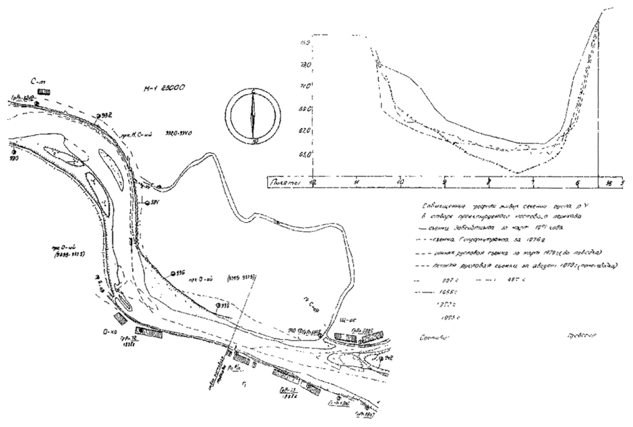 1Указать выше или ниже перехода. 3.4. Климатическая характеристика района мостового перехода(см. п. 2.2) 3.5. Водный режимГенезис и внутригодовое распределение стока. Особенности формирования и подробная характеристика паводкового периода (ранние, средние и поздние даты начала и окончания, интенсивность и продолжительность подъема и спада паводка, амплитуда колебаний уровней). Если мостовой переход находится в зоне подпора другой рекой, приводятся аналогичные данные для этой реки, с указанием расчетных для мостового перехода условий. Если гидротехнические сооружения, расположенные выше или ниже створа мостового перехода, меняют водный режим водотока в районе перехода, дается подробная количественная характеристика этих изменений. Влияние на режим реки подпорных и сгонно-нагонных явлений и водохозяйственной деятельности. Характеристика много- и маловодных периодов. Характеристика изменения уровней в течение года, продолжительность стояния наинизших уровней. Уклоны водной поверхности и скорости течения в районе мостового перехода при меженных и паводковых уровнях. Характеристика гидравлической работы живого сечения в паводок по оси перехода и расчетных морфостворов, интенсивность работы отдельных элементов сечений, проток и староречий, спрямляющие течения на пойме, наличие мертвых пространств. 3.6. Ледовый режимРанние, средние и поздние сроки наступления ледостава, появление заберегов, донного льда, продолжительность и интенсивность шути, осеннего ледохода и их характеристика. Наличие зажоров, места и причины их образования, подъем и продолжительность стояния зажорных уровней. Характеристика ледового покрова. Наибольшая наблюденная толщина и обоснование расчетной толщины льда в районе перехода, возможность образования наледей, характеристика уровней в зимний период. Ранние, средние и поздние сроки вскрытия реки, время прохождения ледохода относительно пика весеннего паводка. Характеристика первой подвижки льда и весеннего ледохода: его продолжительность, размеры плывущих льдин и их траектории, наличие ледяных заторов, причины их образования и местоположение, продолжительность стояния и подъема заторных уровней. Характеристика ледохода в отдельных частях живого сечения, места выхода льда на пойму. 3.7. Природные русловые деформацииОписание характера руслового процесса на участке реки в районе перехода. Наличие отмелей, побочней гряд, плесов и перекатов, очередков и островов, конфигурация и высота берегов русла. Интенсивность русловых переформирований: смещение русловых образований, деформаций берегов с указанием конкретных изменений за установленные сроки. Изменение отметок дна на плесах и перекатах в паводковый и меженный периоды. Влияние на русловой процесс гидротехнических сооружений и водохозяйственной деятельности. При наличии в русле рек карьеров строительных материалов приводят их размеры. Для судоходных рек указывают изменение фарватера за определенные сроки, препятствия судоходству и данные о дноуглубительных работах. Совмещенные лоцманские карты за разные годы, план участка реки с указанием мест деформаций берегов русла и совмещенные поперечные профили размываемых мест приводят в приложении (см. прил. 5). В тексте дается анализ этих материалов, указывается возможность уширения русл