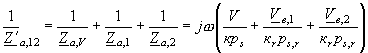Акустический импеданс можно выразить в виде комплексного импеданса или в виде комплексного эквивалентного объема (3.8.1 МЭК 61094-1). Допускают, что микрофон можно представить в виде четырехполюсника с сосредоточенными параметрами, описываемого уравнением взаимности (1а). Такое представление будет достаточно точным для определения Za (5.4) до частоты, приблизительно равной 1,3 частоты собственного резонанса микрофона. Акустический импеданс можно определить косвенным методом, основанным на измерении электрической проводимости Y микрофона. При измерении электрической проводимости микрофон акустически нагружают на закрытый четвертьволновый отрезок трубы [р = 0 в уравнении (1а)], а акустический импеданс микрофона затем рассчитывают из уравнения
