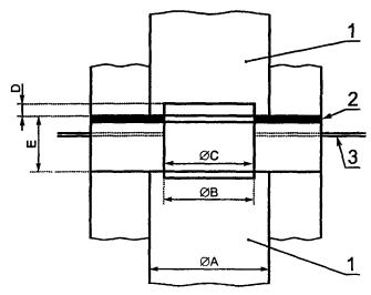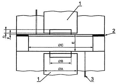 Такие камеры связи разрешается использовать в воздухе для градуировки лабораторных эталонных микрофонов типа LS1P вплоть до 2,5 кГц и типа LS2P до 5 кГц при введении эмпирических поправок на волновое движение. Если необходима высокая точность, рекомендуется определять поправку на волновое движение для каждой индивидуально изготовленной камеры связи, поскольку волновая картина в камере очень сильно зависит от ее размеров. Для расчета Z¢a,12 должно быть использовано уравнение (3) и только для него необходима сумма переднего объема полости и эквивалентного объема микрофона. Рекомендуемые размеры камер связи большого объема даны в таблице В.2 и показаны на рисунке В.2.